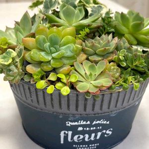 園芸用品やガーデングッズのオシャレなお店に行って来ました。 お店の前には大きな柱サボテンやアガベの鉢植え🌵 店内のアメリカンテイストの雑貨やインテリア用品も素敵でした✨🇺🇸 ⬇️お店にあったロックガーデン風の鉢植えを真似してサボテンの箱庭作りました🌵 ②ロックガーデン風サボテンの箱庭 白いスチール缶はダルトンのガチャ