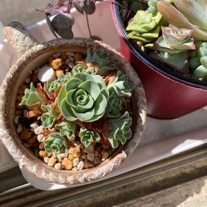 寄せ植えにハマってしまった❣️ 成長することを予想して少し余裕のある植え方にした。成長が楽しみ😊