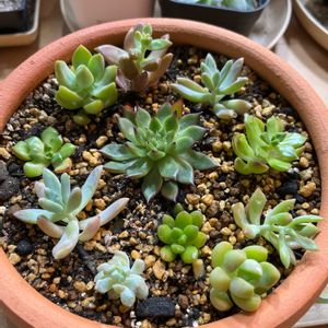 おはようございます。 先程、多肉さんの水やり完了〜。 室内なので、今日は1日中換気&送風かな〜 写真はテラコッタ鉢にカット苗の寄せ植え第2弾。前と被ってるコもいる気がするけど、気にしない〜。 こちらは室内で様子見😃