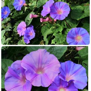 琉球朝顔…毎日楽しませてくれてます🤗💕💕💕 朝はブルー系 夕方はピンク系に変わって一石二鳥🎶 5年目位かな? 種が無くても勝手に弦が伸びてワサワサ咲きだします 今年は幾つ咲いてくれるかな?
