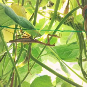 琉球朝顔オーシャンブルーのグリーンカーテンにいたコカマキリの亜生体。もうすぐ蟷螂の秋がやってくる🍁