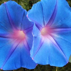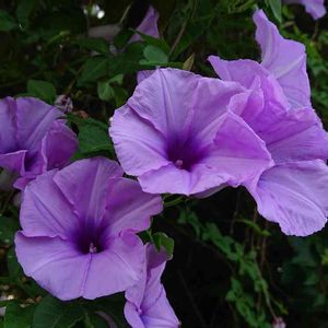 こんにちは😃 琉球朝顔と終日咲き朝顔💜💜 まだ紫の朝顔しか咲いてませんが 両方とも1日咲いてます💟 雨を弾いて撥水加工の琉球朝顔😅👍💜