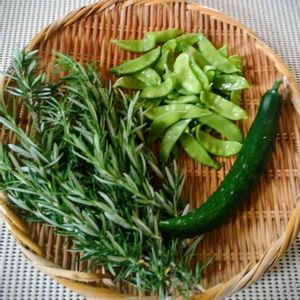 今日の収穫です💚 今年初物のきゅうりを採りました。次の赤ちゃん🥒が3本育って来ているので早めに採りました。 さやえんどうも追肥のお陰でまだ採れていますが 収穫タイムは虫との闘いです🐛🐞🐜 鉢裏には必ずナメクジが💦 アブラムシやウリハムシ イモムシ ケムシまで会っちゃいます‼️ ローズマリーは蒸れに弱いので摘みました✨ 良い香りです~💚🌿
