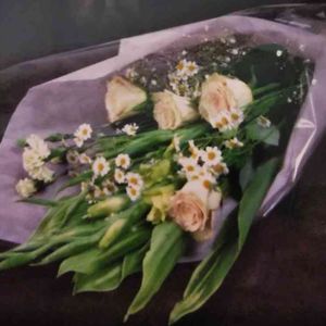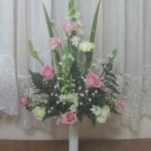 ドーム 花材 バラ ガーベラ カーネーション ナタネ ピットスポルム かすみ草 レザーファン