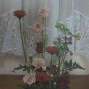 トライアンギュラー 形 180°展開(三方見) 用途 壁際へ置くアレンジ サイドボードの上、玄関 まど 花器 低めの安定感のある花器 但し広い空間へ置く時には、高さのある安定した花器を使ってもよい。 アレンジが大きく見える。 チャペルウエディングの祭壇の両サイド 使いやすい花材 どんな形材でもOKですが、 ボリューム感を出す為に、 スプレーもの、ラインものを使うと良い。 ホームセミナーでは、基本形で作りやすいので、初回に組み込んでも良い。 大きくアレンジできるので、特に年配者は喜ぶ。 花材 バラ オーニソガラム spカーネーション ラクスパー かすみ草 レザーファン ニューサイラン