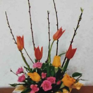 バスケットアレンジ 形 フリースタイル (飾る場所を考慮する) 用途 贈り物。プレゼントに最適 花器 手付きバスケット 手なしバスケット (どんな形でもよい、形に適したアレンジを心掛ける。 花材 どんな形でもOK お見舞いの時 優しい色合い (パステル調等) 香りの弱い花 新築祝い 赤い花は避ける (火事を連想) 花材 バラ ガーベラ spカーネーション ストック かすみ草 丸葉。ルスカス ミリオン