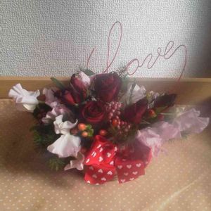 フラワーアレンジメント (バレンタインアレンジ) 赤いワイヤーでLOVE( ¨̮ )💕 今日が愛の溢れる幸せな日になりますように💙💚💛💜❤💗💖💓💞💙💚💛💜❤💗💖