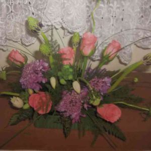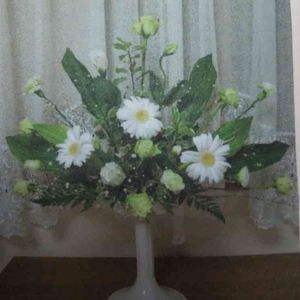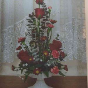 コウン 形 円錐形 360°展開 ドームの頂点を高くした形 用途 教会装飾。広い室内用の装飾。 花器 高めの安定した花器 使いやすい花材。どんな花材でもOK。 カラフルな花を蜜に配置し、果物や野菜などを加えたもの。 ビザンチンコウンスタイル 花材 バラ spマム spカーネーション フィラ かすみ草 ユーカリ レザーファン