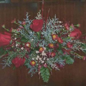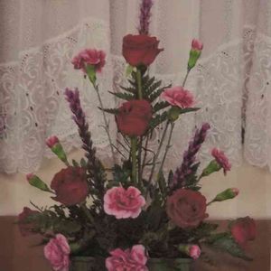 フラワーリース 用途 パーティーの食卓etc 作り方 オアシスの中央に♯20ワイヤを通し、両端はU字形に曲げてつなぎ、オアシスが動かないように固定する。 中心となる花材で、高さを決め高低をつけながら、他の花材を挿していく。 ポイント オアシスは隠すこと。 お花の色分け(グルーピング)をしてもよい。 リースなので、丸くなるように。 応用編 クリスマスリース (ヒバ。ヒイラギ。赤い実を使って) アルミ皿を使い、オアシスを4つに切り四角く並べる。真ん中はスペースを空ける。 アルミ皿の縁が見えないようにする。 花材 spバラ spカーネーション マム スターチス かすみ草 レザーファン ミリオン アイビー