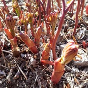おはようございます😊 芽吹きはじめたシャクヤク 大地を自らの力で割って出てきた スゴいパワーだ! 生命力を感じた瞬間であった♡ 2020年3月22日 撮影