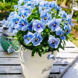 大好きな物だけを寄せ集めた寄せ植えセット🤭 先週植え付けたばかりなのでまだスカスカですが… 今までビオラにはあまり興味が無かったのですが、ホームセンターで見かけたペニーマリーナに一目惚れ😳 写真技術が皆無なので伝わりにくいですが、気品のあるうっすらとした青がとてもとても素敵なんです🥹 大事に育てていきたいです☺️