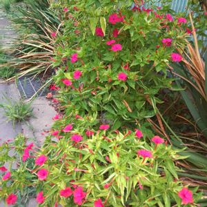 ピンク一色、斑も入っていないショッキングピンクの夜のオシロイバナ🩷 昼間は全て萎んでました、暑い暑い〜💦