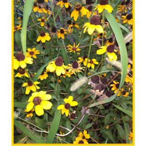 小雨で外にもでられないので 廊下から撮りました。 PM2:24です。 零れ種のルドベキアが 白粉花に隠れています。 💚スライドしてね。💚