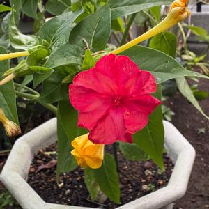 『三色咲き分け オシロイバナ🤍💛💗🍃』 我が家の三色さん 咲きましたよ💕 昨年メルカリで購入して いくつか種を植えましたが⚫️ 残念ながら、一株しか 発芽しませんでした⤵️💦😅 地植えにすればよいですが… プランターに植えたまま お手入れもしてやらず… 水をかけるだけだから…🚿 株も大きくならず ヒョロヒョロです💦😅 いい加減に地植えにして 大きく育てないとですね💦 オシロイバナは意外と 植え替えが苦手なんで… 気をつけないとですね。 でも今年も綺麗な柄を 見せてもらえて 嬉しいです😍 小さな株なので 種が育たず… 種の摂取が期待できず… 来年に向けて地植えを 検討しないとですね💕