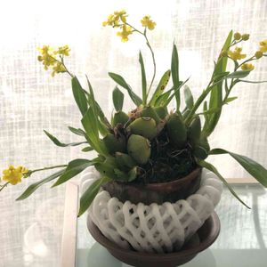 オンシジウム ケイロホルム 2.5号鉢 早春に芽吹き、植え替えのタイミングを逃してしまいました😅 葉っぱが短く、購入時の半分の長さ。 沢山咲いてくれると嬉しい。