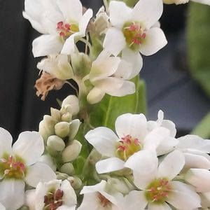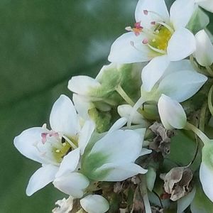 ソバ(蕎麦)タデ科ソバ属 花の都公園のソバの群生、見頃は過ぎてました。 綺麗に咲いてるお花を選んで撮ってきました。 1⃣ アップのお花、蕊がピンクで可愛い〜 4⃣ タチアカネと言う種類のソバは実が赤くなるそうです。 長野県野菜花き試験場が育成した県オリジナルの品種で、茎が丈夫で倒れにくいから「タチ」、そばの果皮が茜色になることから「アカネ」という名前が付けられたそうです。 高さ0.7~1.3mほどの一年草。 茎は直立して、よく枝分かれし、紅色を帯びるものもあります。 葉は互生する単葉で、長さ3~7cmの三角形となり、全縁です。 茎先や上部の葉腋から総状花序を出し、径5~6mmの花がつきます。 花には花弁はなく、白~紅色の萼が花弁状に目立ちます。 自家不和合性です。 花には長花柱花(長い雌しべと短い雄しべをもつ)と短花柱花(短い雌しべと長い雄しべをもつ)の2タイプがあり、お互いの花粉で受粉しないと結実しません。 果実は長さ6~8mmで3稜がある三角錐状の痩果です。 🏷 白い水曜日♡ 🏷 白い貴婦人✨