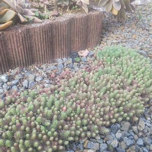 朝からいいお天気☀️ 昨日のパリダムに続き今日も草系セダムです ⬆️この鉢でもセダムが暴走し始めてます 年末にクリスマスツリーを解体して作ったチマチマ鉢(12/23投稿) 多分草系セダムが暴れるだろうと白いフェンスで仕切ったけど、全く役に立ちませんでした😅 ↙️花壇の一角 ここはこれ以上お花を植えないつもりなので雑草対策として斑入りパリダムをパラパラしています 手前は春先頃にパラパラしたもの 伸び伸びになって花を咲かせそうです 奥のフェンス近くのは最近の物 こんもりしてきてベビーサンローズや紅提灯を飲み込んでます ↘️敷地西側 ここは5、6年前からパリダム、カメレオン、シロバナタイトゴメなどで埋まっています 所々で草も生えますが背が高い草だけなので抜きやすいです 花壇の方は今年始めたばかり 多少は雑草対策になるでしょうか🤔
