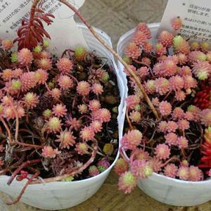 【セダム属 斑入りパリダム】 Sedum pallidum (別名 真珠星万年草・ 乳色万年草・パリデュム) 仲良しのフォロワーさんから、 斑入りのパリダム入荷の情報を いただき、買いに行きました アンズチャン、キノウ ヤットイケタヨ 🚙💨 セダムは似通っている物が多く、 実はかなり混乱気味です( ω-、) 紛らわしいのは、 薄雪万年草(ヒスパニクム)🌱 他にはミルキーウェイも、 パリダムの名前で 流通している事があるとか? 「ヒスパニクムにとてもよく似ており、間違えて流通する事がよくある。 ヒスパニクムとの違いは、花が咲いたときの花びらの数と言われており、パリダムは花びらが5枚、ヒスパニクムは花びらが6枚。」 【レポスの多肉村】さん のサイトから抜粋 https://tanikumura.com/smartphone/page364.html アルブム・ヒレブランティも 花弁は6枚ですね 【やまはる園芸 河村賢治】さんの苗 http://yamaharuengei.com/