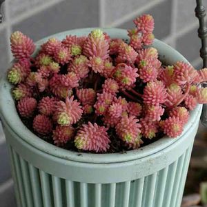 多肉植物 ルビーネックレスさんが可愛いお花を見せてくれました💕 アフロde顔鉢さんとコラボ🎶 今日の作業 レイニーブルーの鉢増しと冬剪定
