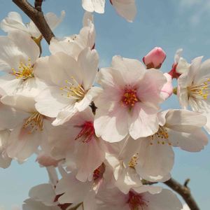 黄砂でかすんだ空ですが 写真ではきれいにみえますね 🌸咲きそろってきました 密でかわいいです😊🌸