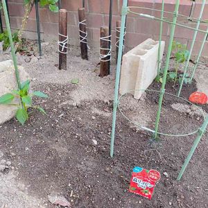 今年はトマト2種類とカラーピーマン(パプリカ)の赤を植えてみました。土には化学肥料じゃなくて知人からもらった熟成堆肥を混ぜ込みました。