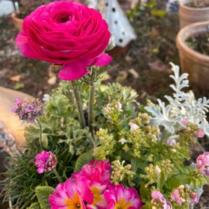 少し前に作った寄せ植えが 華やかになってきました❁(•‿•) この場所は日当たり抜群です😊