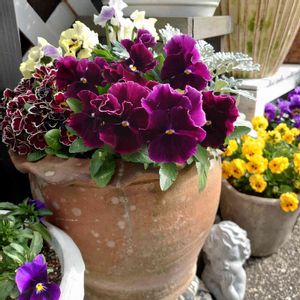 こんにちは😃 秋に作った寄せ植えでまだ載せてなかった この子達。 ↖️葉牡丹と寄せてましたが、伸び伸びになってしまったので、葉牡丹だけ移動し、こぼれ種で発芽したウインティを入れました。 ビオラは横浜セレクション💙フレアーブルー💙縁取りがでてこのお色も綺麗💜💙 ↘️こちらは、百円で買ったビオラ💛リップレモンピンクさん💛モリモリになりました😄 こちらも葉牡丹と寄せてましたが、伸びてしまって上だけ✂️。パープルのアリッサムが少しだけ元気に塗ってきましたが、まだ 正面からは見えないですね💦 体調不良のため、コメント閉じますね🙏 みなさんのpicはゆるりと見させて いただきます。