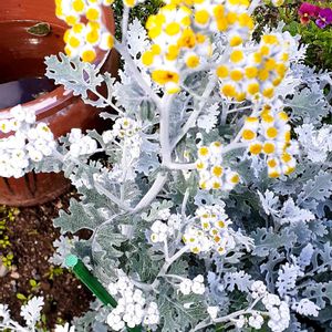 ダスティーミラー 白妙菊 白銀の葉が美しく、他の花を引き立てて寄せ植えに欠かせない でも黄色い花で存在感を出す 花、可愛い💛💛💛