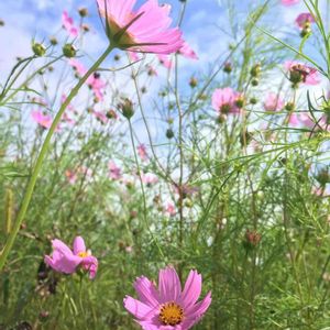 今日のお花「コスモス」 近所の道の駅の広場🌱🌱🌱 青空にゆらゆら…