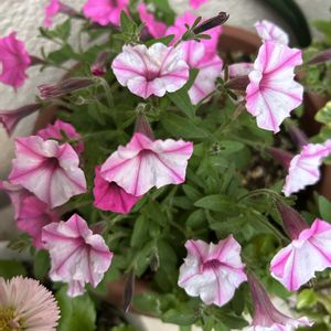 今年はペチュニアが絶好調❣️ここ福井は梅雨なのに雨がほとんど降らないからですね。満開4回目の子までいます。 ほとんどの鉢を6〜7号に抑えてるので、あまりでっかくならないですがこんもりぎゅっと咲いてくれてます😊