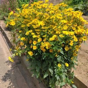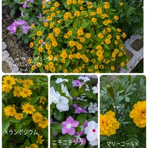 住宅街に有る小さな児童公園の花壇です✨ 黄色の小さな可愛い花が目に止まりました🟡 メランポジウムと言うのですね!