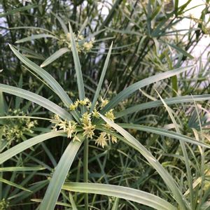 花も少なくなった散歩道でひっそりと咲いていました✨ 以前GSで教えて頂いたシュロガヤツリです🎵 <シュロガヤツリ> カヤツリグサ科の常緑多年草 別名 シペラス