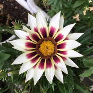 一昨年の写真を投稿しま〜す。😊 これもガザニアさんです。 こんな綺麗な子がいたんですね。いつのまにかいなくなってしまいました。🥲 ガザニアは高い温度と高い湿度に弱いみたいですね。日に当てないと咲かないけど、あまり暑い夏には風通しの良い半日陰に移動してあげると良いとありました。 う〜ん、日向に置きっ放しが原因かしら?🤔