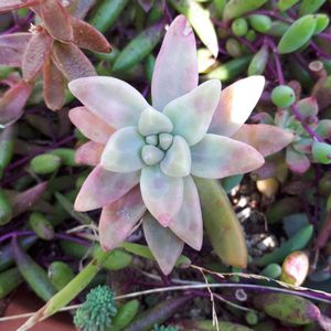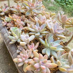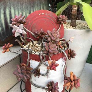 おはようございます😊 あちこちに居たグラプトなどなど1つのプランターにまとめました😁 伸びてたりでかっこ悪いけどみんなピンク色しててこれはこれで可愛いかな😍
