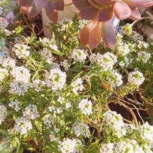 今朝の朝日を浴びて🌅 大好きなブロンズ姫👸👑*゚ こぼれ種のアリッサム