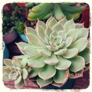 仕事途中立ち寄ったお店で バチーンと目が合っても~た マーガレットレッピンの親子🌱 え?? マーガレットレッピンってこんなに可愛かったっけ?? こんなにでかくてボリュームあったっけ?? べっぴん娘に鉢の中にはすでに葉っぱが出てる葉挿しっ子ベビーまで•••どんだけ(๑˃́ꇴ˂̀๑)?? もちろん家にお持ち帰り🌱♡ 買った地域は全然ちゃうのにtsuyoぽんの購入レッピンとまさかの姉妹(*´艸`)笑 って•••これがお店にあったら買っちゃうでしょ\♡/笑 見つけた人 買うべし!! ほんま可愛い🌱♡!! 普及種といえども 可愛いって最強(⁎˃ᴗ˂⁎)♡ ってマーガレットレッピンってグラプト??エケ?? どっちになるんやろ•••🌱
