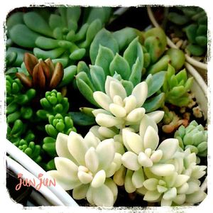 秋麗は,姫秋麗と2種類と思ってたら,だるま秋麗を見っけ.トリオになった. グラプトペタルムだから,アメジスチヌムに似てるところがあるけど, 写真で間違いそうなのは月美人などの美人系. ケド,現物では白粉の有無で区別できそう. この株,葉肌はツヤツヤ,白粉なしだから. これも頑丈そうで,無精なウチ向き.秋麗トリオで放っておけそうです.