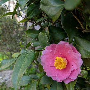 お早う御座います〜☀ 今日も春うららだが…黄砂でどんより💦 庭では🩷ツバキが素敵に〜 あら!木陰の中でもひっそりと咲いている!! 見つけたよ👍😃🎶 今日もハイビスカスが満開に〜🈵👏🥰🎶 葉は少なく細い木だが次々にお花を咲かせている💪😃 大輪シンビジウムももうスグ満開に〜✌️🥰