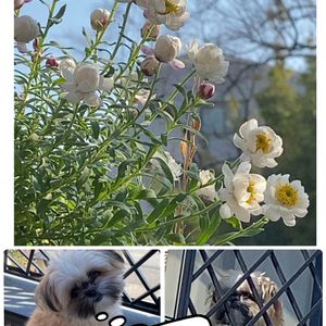 暖かい〜🎶 春〜青空〜☀️ 花かんざし続きます。 2階から見張っている🐶と🎶 お出掛けしたいけど、 用事がいっぱい💦😭