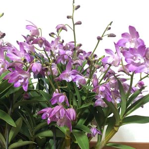 デンドロビウム スペキン系品種のさくらひらひらがたくさん咲いてきました。 我が家に開花株で来てから3年目ですが、毎年よく咲きます。 日中は部屋中に甘い香りを漂わせます。 香りの蘭としてオススメ品種です。