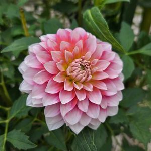 ダリア「オータムスノー」 (キク科) ピンクから花の先端が白くなるグラデーションにオレンジのアクセントが入るダリアさん💗🧡🤍 今月3日で閉園、綺麗に咲いていたダリアさんたちは、一斉に切られて販売されたご様子✂️また来年のお楽しみ🎶 先月下旬 町田ダリア園にて撮影📷