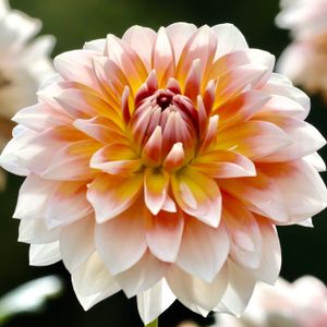 ダリア「インスピレーション」 (キク科) 原産地 メキシコ🇲🇽 ほのかに染まる薄いピンク色がたまらなくかわいい雰囲気に🤍🤍🤍💛💗 先月末日 町田ダリア園にて撮影📷