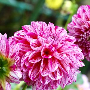 ダリア「マーブル」 (キク科) 黄色に赤紫色の絞りが入る個性的な花色。中小輪咲き、花茎13㎝前。 これまた なんて素晴らしいお姿😍 町田ダリア園にて撮影📷