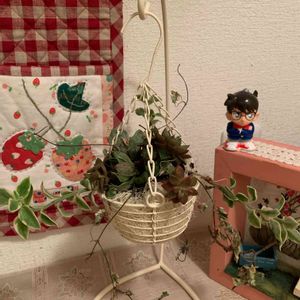 GSのNさんからいただいた多肉ちゃんで初のハンギング寄せ植えに挑戦しました🥰 他にもいろいろいただいて感謝です💖 壁のパッチワークでイチゴの日に参加します🍓