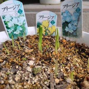 こんにちは😊 今年もフリージアの芽が出ました🌱 香りが大好きなお花です✨ 植えっぱなしで3年目🪴 手のかからないいい子です🤗 今日も1日元気に過ごせますように🫐