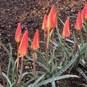 原種チューリップ🌷 早朝のつぼみはこんな姿です お日様が高くなるとパカーンと開き 中は黄色 とーっても可愛い 毎年植えっぱなしの球根ですが この時期にしか会えないわたしのお気に入りです🩷