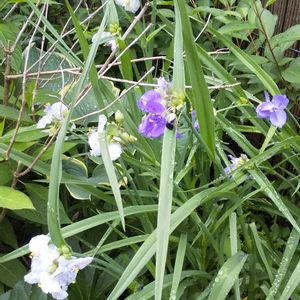 ムラサキツユクサの紫花と白花が咲いています