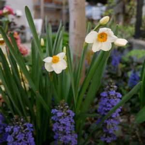 植えっぱなしの原種系チューリップとムスカリ、ノースポール