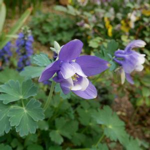 庭のミヤマオダマキです。 種が飛んで 今までと全然違う場所て咲いています。 上品な花だけど、たくましい!
