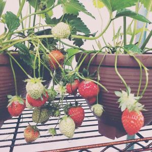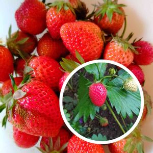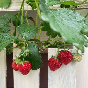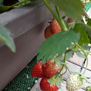 おはようございます🍓本格的な雨☂️ですいちご避難🍓先日ふた粒😊自分で初めて作るとやっぱり感激😁🍓🍓 右上下アイベリー 左上 四つ星(豊作いちごシリーズ) 左下 みのりくん(年2、3回収穫 白いいちごと、高価苗はすぐダメになりました [プランターと鉢植え]